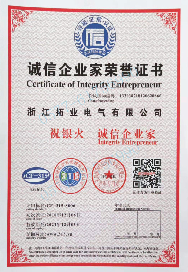 • 拓業電氣公司認為誠信、務實、高效、創新、尊重是與客戶間友好合作的基礎,寬容是解決問題的前提,創新是發展事業的重要利器,服務是創造價值的根本。致力于為客戶、員工、股東傳遞領先價值......